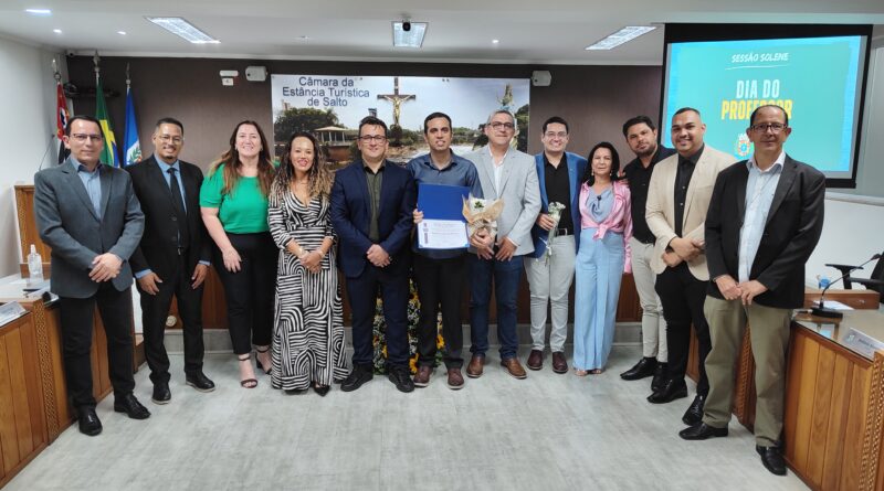 Nesta terça-feira (14), a Câmara de Vereadores de Salto promoveu uma sessão solene em comemoração ao Dia do Professor. O homenageado deste ano foi o professor Rodrigo Lucas de Oliveira, reconhecido pelos relevantes serviços prestados à educação do município, por indicação da Mesa Diretora.