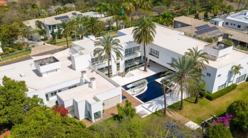 Com área total de 6.100 metros quadrados, a mansão será vendida “no estado em que se encontra”. O imóvel se destaca pelo alto padrão e pela dimensão dos ambientes. A residência conta com uma suíte master de 240 metros quadrados, equipada com SPA, camarins independentes e closet blindado, além de seis suítes revestidas em mármore e duas suítes destinadas a hóspedes. A área interna inclui ainda salas amplas de estar e jantar, escritório com vista para o living, cozinha de 120 metros quadrados com ilha central, sala de ginástica, espaço de SPA com banheira de imersão, sauna, cinema, adega e salão de festas com capacidade para 150 convidados.