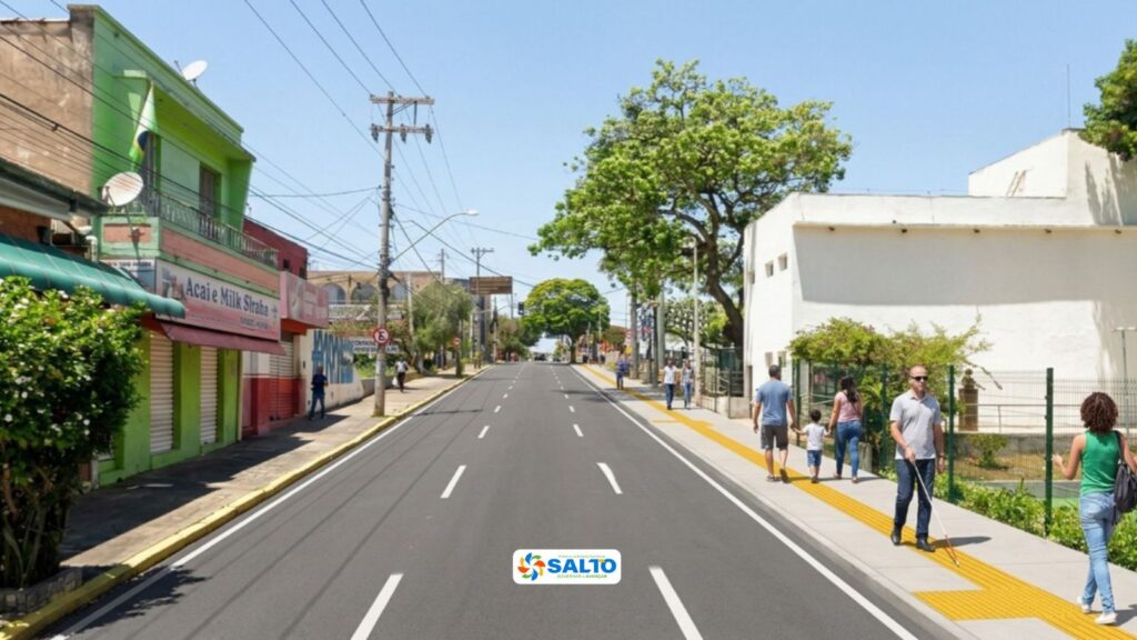 O projeto prevê a requalificação completa dos passeios públicos, com implantação de recursos de acessibilidade universal, como piso tátil, rampas de acesso, adequação de inclinação, nivelamento das calçadas e melhorias na sinalização.